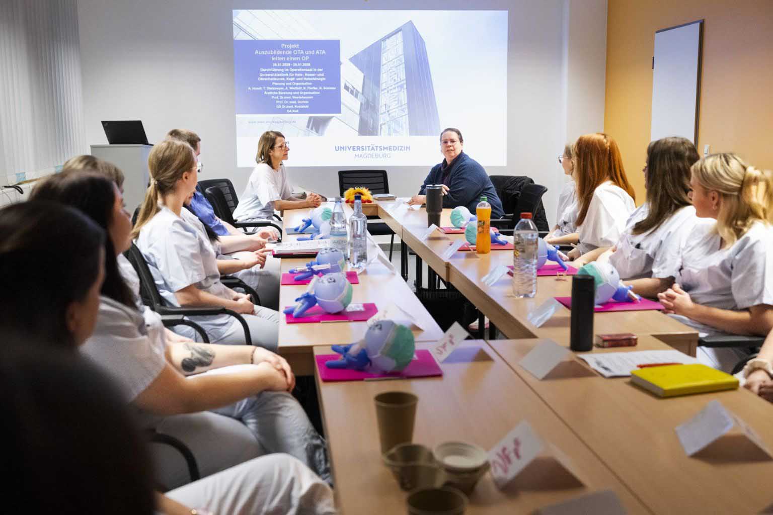 Vom 26. bis 29. Januar wurde es im OP der Universitätsklinik für Hals-, Nasen- und Ohrenheilkunde, Kopf- und Halschirurgie Magdeburg besonders spannend. Im Rahmen des Projekts „Auszubildende leiten einen OP“ übernahmen neun Auszubildende im 3. Lehrjahr unter enger fachlicher Begleitung zentrale Aufgaben im OP-Alltag. Beteiligt waren sechs Auszubildende der Anästhesietechnischen Assistenz (ATA) sowie drei Auszubildende der Operationstechnischen Assistenz (OTA).