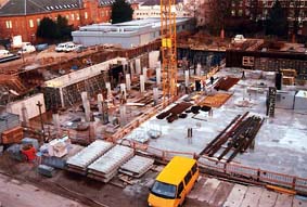 Ehemalige Hauptversorgungstrassen im Baufeld (z.B: Heizkanal, Wasser- und Abwasser-Leitungen, Elektro-, Telefon- und Lichtleiter-Kabel) waren vorab umverlegt worden.